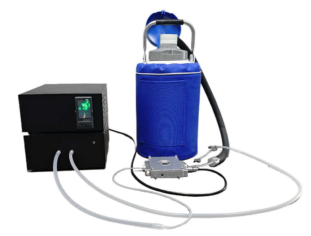 適合倒置顯微鏡使用,冷熱臺從正面裝夾樣品后,顯微觀察的時候倒置在載物臺上。該型號冷熱臺的樣品采用特殊的螺紋卡套結(jié)構(gòu)固定樣品。