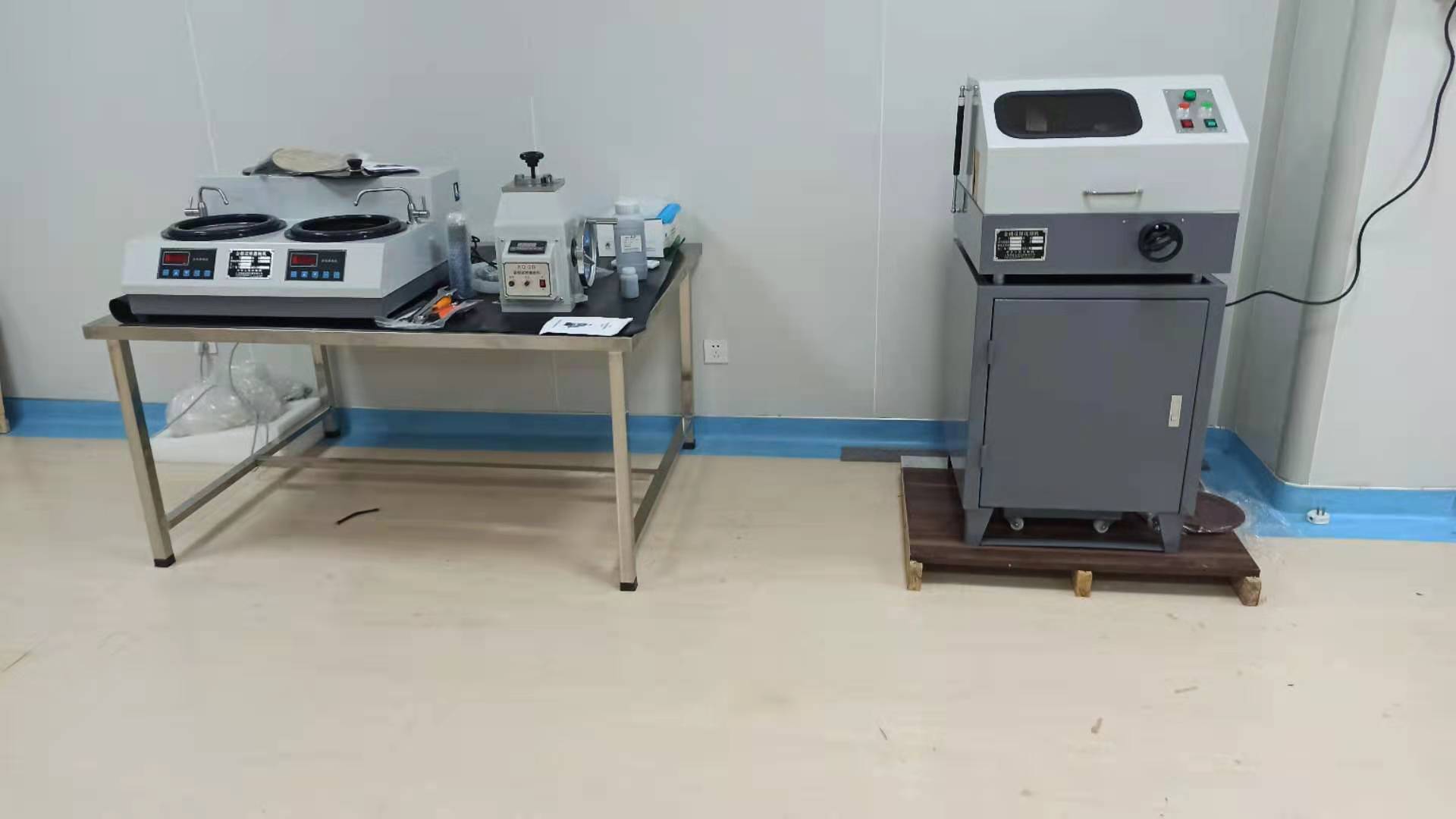 駝人集團(tuán)現(xiàn)場調(diào)試金相顯微鏡DMM-200C,金相試樣切割機(jī)QG-3A,金相試樣磨拋機(jī)YMP-2,金相試樣鑲嵌機(jī)XQ-1。