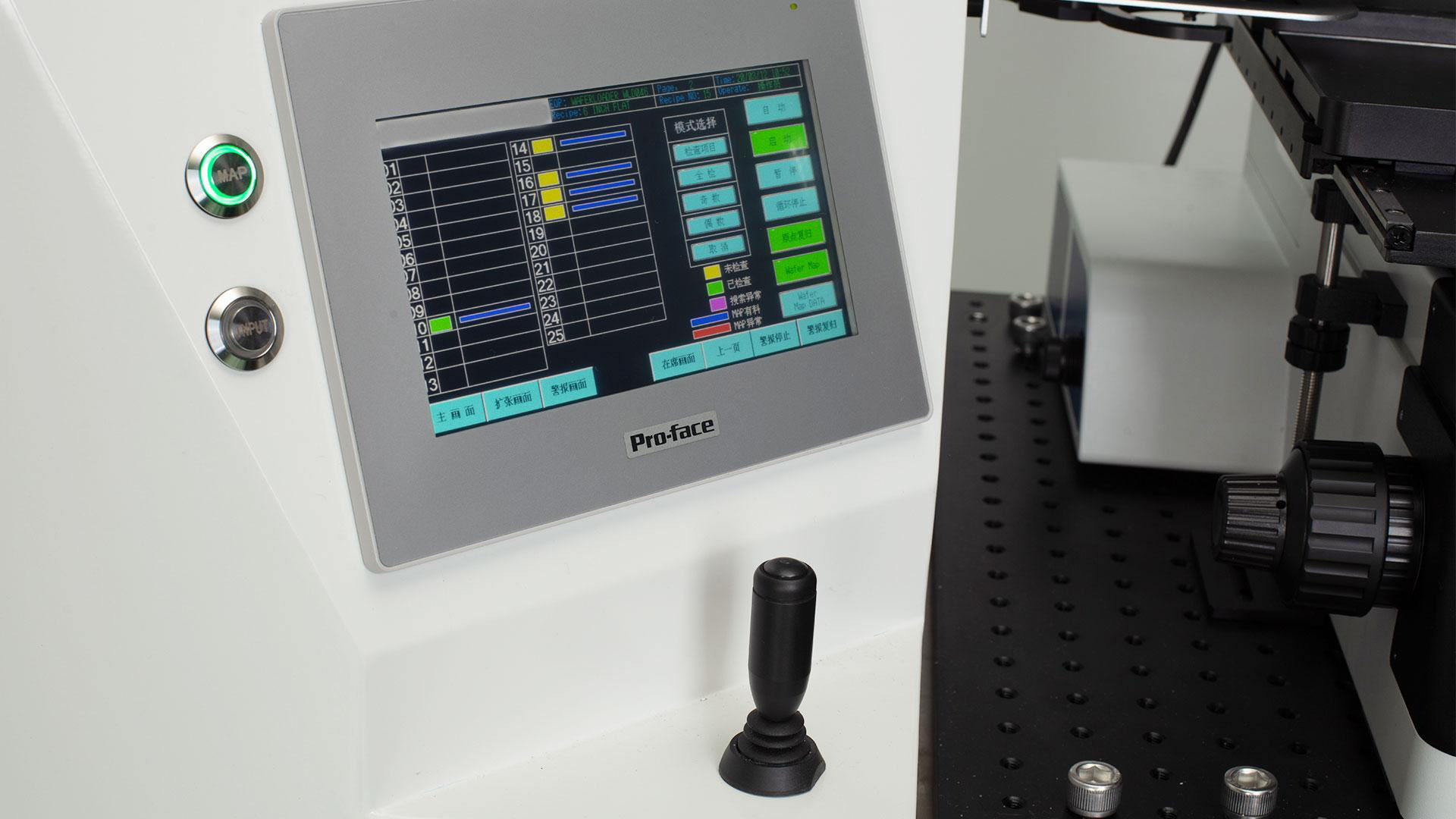12英寸自動平臺,X、Y、Z、φ多方向調節,晶圓承片臺臺面φ70mm,可360°旋轉,移動行程600mm(X方向)×500mm(Y方向),觀察范圍:310mm×310mm,φ方向可±5度旋轉,各軸運動速度可以高低速切換 |